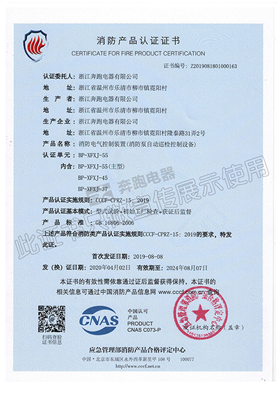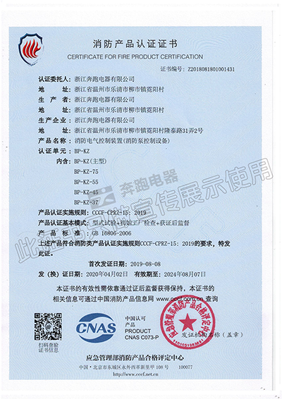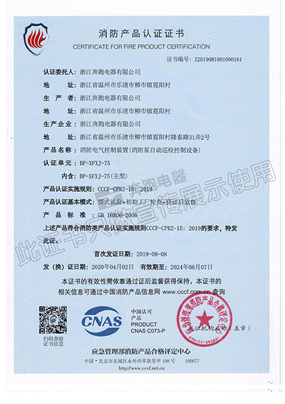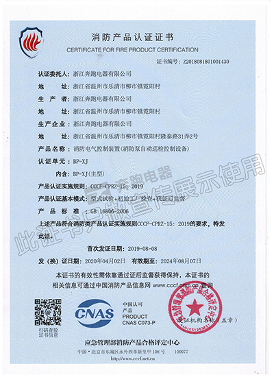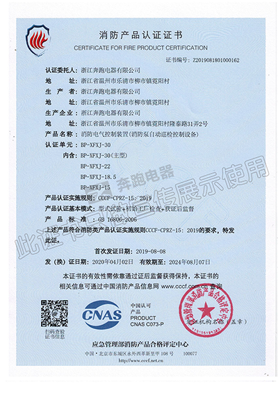 消防產(chǎn)品認(rèn)證證書(shū)