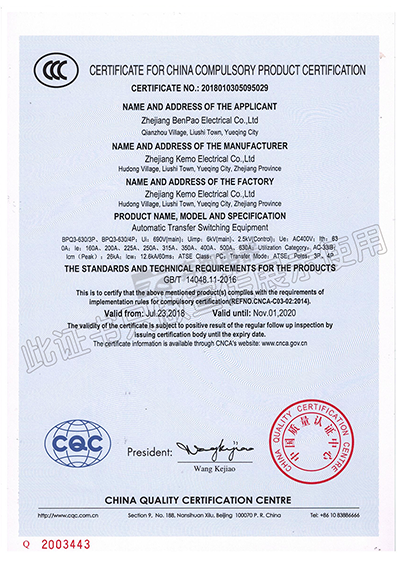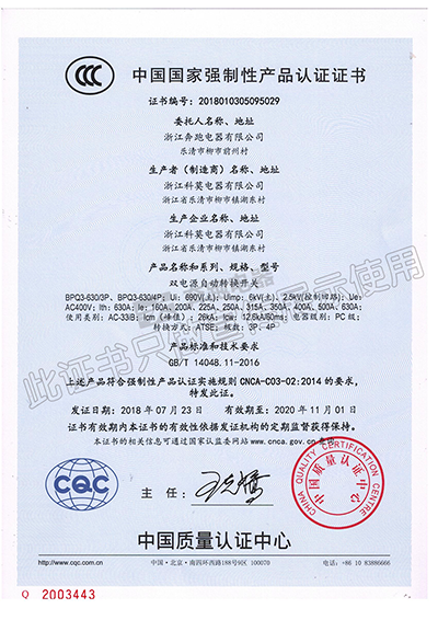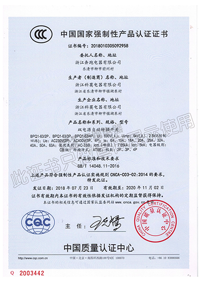 中國(guó)國(guó)家強(qiáng)制性產(chǎn)品認(rèn)證證書(shū)